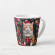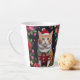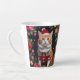 Um gato real vestindo uma fantasia de Papai Noel com fundo floral, design de colheita