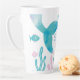 Caneca De Café Latte Mermaid Under the Sea Pastel Pink Blue