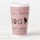 Uma caneca perfeita para aqueles que amam lattes, cães e os confortos de casa. O Meu Cachorro Não Permitiria que o design de Caneca Latte exibisse um texto que dizia "Eu iria...mas o meu cão não o permitiria." com uma pata impressa e uma silhueta de cão embelezada contra um fundo de madeira rosa. Itens de presentes adicionais disponíveis com este design também.