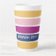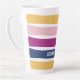 Tendência Moderna Cristã Rasgada JEREMIAH 29:11 caneca latta em framboesa, listras horizontais amarelas, verdes e azuis, com a Escritura Versa JEREMIAH 29:11 - Pois eu sei os planos que tenho para vocês, diz o Senhor. Esta referência de Bíblia é PERSONALIZÁVEL para que você possa adicionar seu nome ou criar seu próprio texto. Esta caneca de latte listrada cristã em cores de tendências faria uma adição brilhante à sua coleção de caneca cristã, e faria um presente de excelente para o Natal e aniversários. Escolha entre uma ampla seleção de canecas inspiradoras cristãs desenhadas por Designs bereanos.