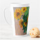 Latte Mug, com o Buquê de pintura de óleo de Girassóis de Claude Monet (1881). Lindos girassóis num vaso azul sobre uma mesa vermelha. Um presente de excelente para fãs do impressionismo e da arte francesa.