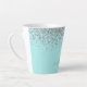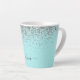 Caneca De Café Latte Monograma Brilhante Azul Aqua Prata Teal