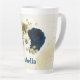Caneca De Café Latte monograma de flores azul marinho marfim dourado