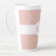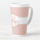 Aproveite seu café com uma lata de lata rosa-rosa monograma personalizada. Design de caneca latta apresenta um fundo brilhante cor-de-rosa com embelezamento para adicionar seu nome e monograma para personalização. O brilho é processado por trabalho de arte e o item final não contém brilho. Se precisar de assistência com qualquer personalização, entre em contato comigo diretamente.