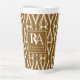 Caneca De Café Latte Monograma de Padrão Branco Castanho Moderno