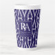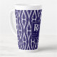 Caneca De Café Latte Monograma de Padrão Branco do Marinho Moderno