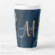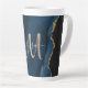 Tenha seu café matinal em estilo com este elegante monograma personalizado grande caneca latta com um agato azul acentuado com brilho sujo de ouro. Personalize o seu monograma inicial em caligrafia manuscrita com o seu nome acima. Um presente feminino único para aniversário, feriados e qualquer ocasião especial. Projetado apenas para você por Camisetas Extremas!