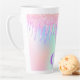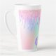 Caneca De Café Latte Monograma holográfico cor-de-rosa com gotas