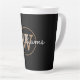 Caneca De Café Latte Monograma Moderno em Script Dourado Preto