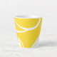 Esta caneca moderna oferece um design expressivo desenhado à mão, composto pela movimentação de linhas brancas que atravessam a superfície plana amarela alaranjada.