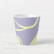 Esta caneca moderna oferece uma design expressiva desenhada à mão composta por linhas esbranquiçadas amarelas que atravessam a superfície plana lilás.