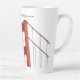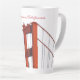 A linda caneca de café mostra o esboço da torre vermelha da ponte Ouro em fundo branco.