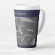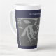 The Latte Mug features a calm design in dark blue tone. An athletic man performs an intense spinning workout on an indoor bike. Focused and full of energy, he trains endurance and cardio in a modern gym environment.