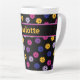 Cor-de-rosa-neon, amarela e roxa no padrão preto de picleball, inicial personalizada. Excelente como presente. Latte Mug com nome personalizado ao lado Feliz uso e melhores desejos para seus futuros jogos!