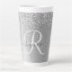 Personalize facilmente esta trendy design de caneca de latte com brilho prateado bonito em um fundo metálico escovado prateado.