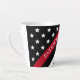 Mostre seu suporte com esta fina caneca latte do bombeiro de linha vermelha. Este design apresenta uma bandeira de bombeiro preto e branco com linha vermelha fina a um ângulo e um nome para personalizar. Concebido pelo artista mundialmente famoso ©Tim Coffey.