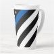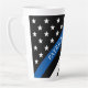 Mostre o seu apoio com esta fina caneca latte de bandeira azul da polícia. Este design apresenta uma bandeira negra e branca da polícia com linha azul fina a um ângulo e um nome para você personalizar. Concebido pelo artista mundialmente famoso ©Tim Coffey.