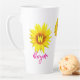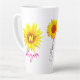 Caneca De Café Latte Nome Floral e Monograma | Girassol Personalizado