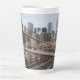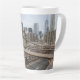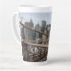 Encham-se com um café latte nesta caneca de cerâmica que apresenta uma imagem de enrolamento da linha do horizonte de Nova Iorque, vista a partir da ponte do Brooklyn em Lower Manhattan. Selecione o tamanho da caneca latta. Faz um viagem de souvenir excelente!