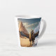 Uma caneca branca de latte com uma criatura mítica ficcional nela.