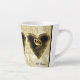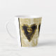 Adorável xícaras de café! Esta bela xícara de latte tem uma imagem impressa de uma pintura acrílica de um anel de ouro de dentro de um anel em forma de coração.