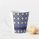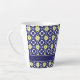 Caneca De Café Latte Padrão de azulejos florais azuis amarelos mediterr