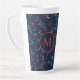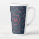 Caneca De Café Latte Padrão de morango azul-marinho monograma elegante