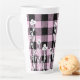 Caneca De Café Latte Padrão de xadrez floral preto-de-rabo-preto-rosa