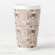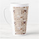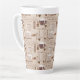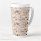 Aproveite o seu café favorito nesta caneca latta com um padrão de xícaras de café e termos em marrom e branco sobre fundo bege. Faz um presente de excelente para o amante do café em sua vida.