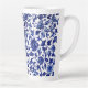 Caneca De Café Latte Padrão floral azul-marinho chinês em branco