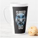Um presente engraçado para um pai de surfe mostrando um design gráfico de surfista com protetor solar.