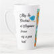Uma caneca latte impressionante com a citação atrás. Em uma vila questil, o outono vestiu o mundo em tons quentes de vermelho e ouro. Entre as folhas, um cachorro-da-índia chamado Chester congelou. Seu pelo de ouro era um casaco aconchegante contra o frio do outono. Um dia, enquanto perseguia folhas, três pássaros azuis, fazendo uma pausa durante a migração, juntaram-se à diversão. Suas penas de azure esfolavam enquanto passavam pelas folhas, e o riso enchia a floresta. No meio do prazer, surgiu um ouriço chamado Hazel. A gentileza de Chester tranquilizou Hazel, e o grupo improvável formou uma amizade. Eles exploraram a floresta, chutando as folhas em rustação enquanto iam. Chester voltou para casa naquela noite, carregando a magia daquele dia de outono no seu coração, uma memória que ele iria para sempre tesourar.