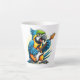 Um papagaio colorido, que ama e toca rock, com energia criativa excelente.