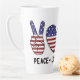 Passe a sua cerveja matinal com uma dose de felicidade patriótica com a nossa caneca latta de "Paz, Amor, América". Criada com amor e concebida para celebrar o espírito da América, esta caneca é perfeita para aqueles que valorizam a paz, o amor e o seu país. Apresentando um charmoso design adornado com as cores icônicas da bandeira americana, cada sip irá enchê-lo de um sentimento de orgulho nacional. Quer você esteja gostando do seu café favorito ou se aconchegando com uma xícara de chá, esta caneca adiciona um toque de Americana à sua rotina diária. Também faz um presente pensativo para veteranos, patriotas, ou qualquer pessoa que ame os EUA. Comece seu dia certo com uma caneca que incorpora paz, amor, e o espírito da América.