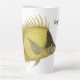 Caneca de latte fácil de personalizar, basta adicionar seu nome! Ilustração vintage de vida marinha aquática com design de peixe-borboleta tropical ou peixe-coral. O Chelmon Longirostris tem um corpo amarelo, uma nadadeira dorsal espinhosa e um focinho ou nariz comprido.