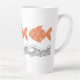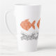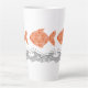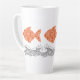 Peixes saltando acima das ondas oceânicas. Os peixes são fundidos numa laranja suave do terracota e decorados com um delicado padrão floral, acrescentando um toque caprichoso, inspirado no Japão. As ondas abaixo são ilustradas com linhas pretas finas em um estilo tradicional de bloco de madeira. Perfeito para cozinhas costeiras, amantes da natureza, ou qualquer pessoa que goste de uma estética serena e oceânica.