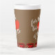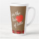 Para o bebedor de café sério e amante de lattes esta caneca de 17oz é para você. A cor de fundo castanho suave tem uma borda de copos de café vermelhos no fundo. O texto escrito em um coração vermelho diz, "pelo amor de Latte". A cor de fundo pode ser personalizada. Este design também está disponível na caneca de 12oz.