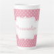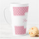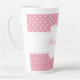 Bolinhas brancas, cor-de-rosa, latte mug. Personalize com o nome, as iniciais, a mensagem, a citação ou qualquer outra coisa que desejar. Adicione uma caneca de café com na moda e moda para sua cozinha e bebidas.