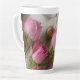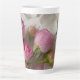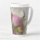 Caneca De Café Latte Pétalas em Pérolas Flores Rosa Espalhando em Dewy