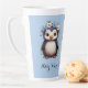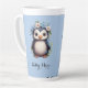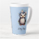 Caneca De Café Latte Pinguins de Cubo Azul Nome Personalizado e Iniciai