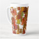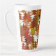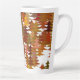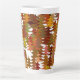 Camadas sutilmente sombreadas de recortes de pinheiros em verdes, vermelhos, laranjas e castanhos em um fundo branco
