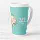 Caneca De Café Latte Pink Floral and Teal Monogram