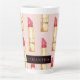Caneca De Café Latte Pink Moderno E Pau Vermelho Pintel Padrão Girly Co