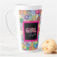 Caneca De Café Latte Poder da Menina | Girassas rosadas Lindas