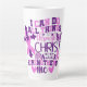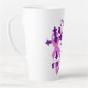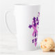 Verso das Escrituras, "Eu posso fazer tudo através do Cristo que me fortalece". Cruz roxa inclinada com uma fita rosa à esquerda e uma borboleta roxa com uma fita rosa à direita. Além disso, um pequeno arco-íris e uma fita cor-de-rosa sozinhos e dois corações no fundo.