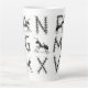 As letras do alfabeto são desenhadas como desenhos de formiga complexos, com cada letra representada por uma formação de formigas que forma. As cores das formigas são perfeitamente adequadas à cor de fundo, fazer o design ideal para copos.