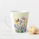 Se você gosta da estação de primavera, então você vai adorar esta caneca latta. Esta caneca possui um jardim de flores de íris desenhado pela cor d'água com uma camada de borboletas monarcas e um beija-flor. Uma bonito caneca cor pastel para a estação do primavera. Comprar para você ou um conjunto de dois ou mais como presente para aquele especial.