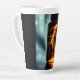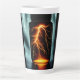 A caneca latte de arte digital legal apresenta um dramático e brilhante ataque de raios dentro de um jarro fechado. O proverbial raio numa garrafa...