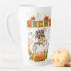 Uma grande caneca de café de 17oz apresenta nossa Coleta junto com um design de coração agradecido rodeado de folhagem de outono, abóboras e bandeira de bunting. Utilize este do início do outono e através da Ação de Graças!