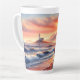 Caneca De Café Latte Romantic Coastal Sunset Lighthouse Walk